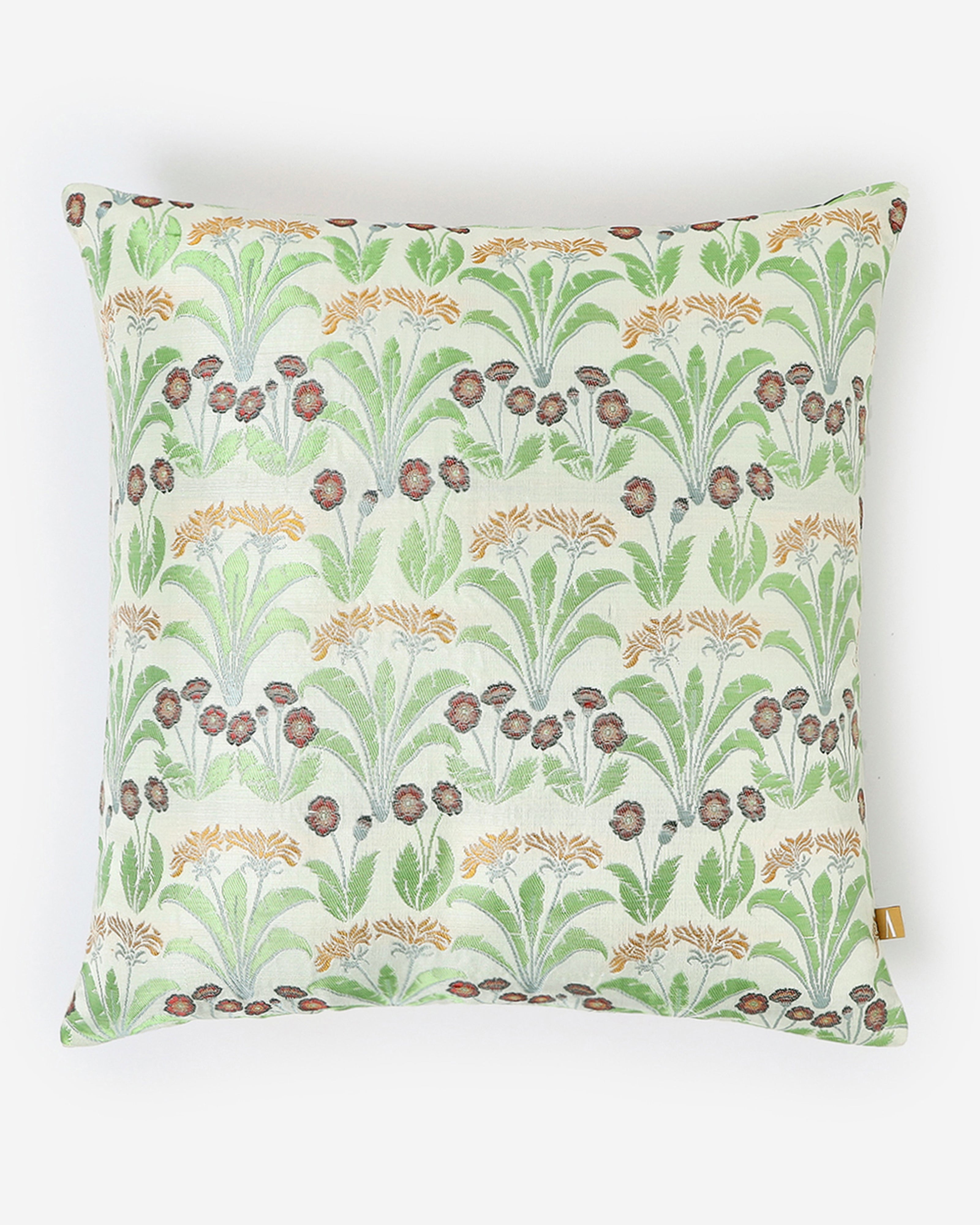 Genda Phool Banarasi Satin Brocade Silk Cushion Cover