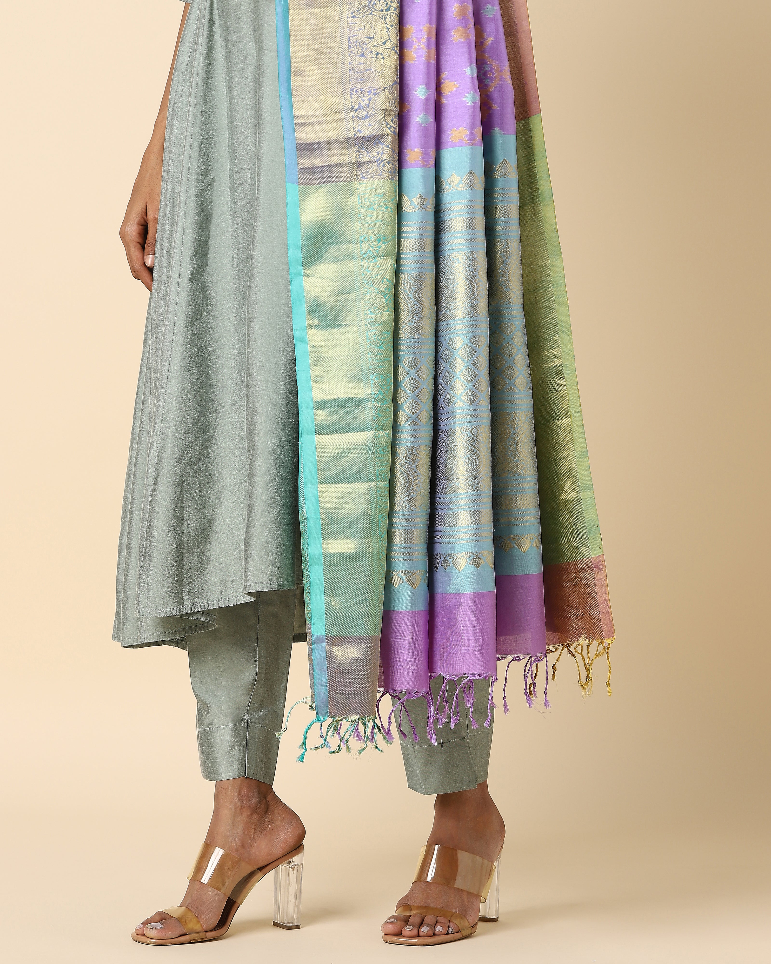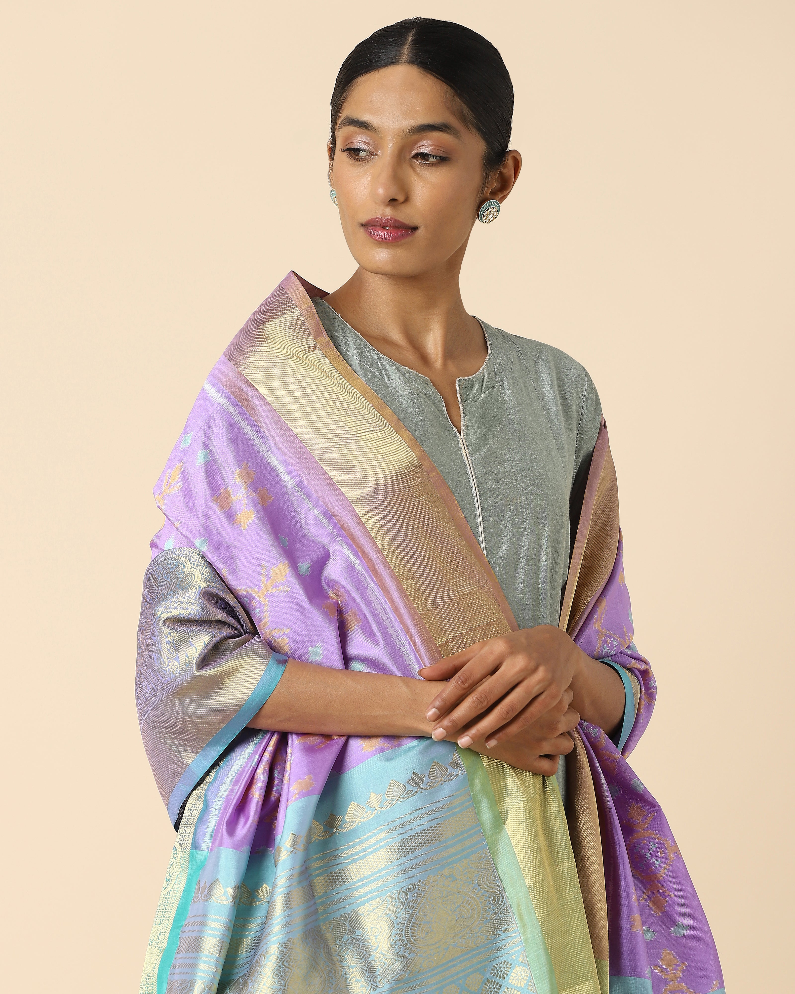 Mirza Pochampally Weft Ikat Silk Dupatta